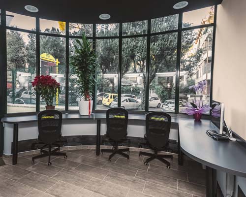 - le nostre postazioni di lavoro si trovano nel quartiere Parioli di Roma, una zona molto dinamica della capitale facilmente raggiungibile con i mezzi pubblici.