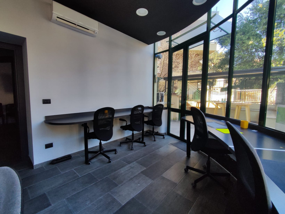 Doing Working è il servizio di coworking nel cuore di Roma che permette ai lavoratori il noleggio di postazioni di lavoro. L'ufficio pensato per un uso condiviso ospita attualmente 4 postazioni professionali dotate di schermo HD, telefoni VOIP, Wi-Fi, situate davanti a una vetrata con affaccio direttamente sull'ampia veranda. Le postazioni di coworking a Parioli, dovutamente distanziate l'una dall'altra, dispongono di tutto il necessario a livello di comfort e illuminazione, con lampade da terra e da scrivania, cestino, cassaforte, prolunghe per le prese.